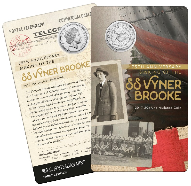As we near the 75th anniversary of the sinking of the SS Vyner Brooke on Tuesday 14 February 2017, a special collectible commemorative 20 cent coin has been released by the Royal Australian Mint (the Mint) to recognise the story of this devastating but also inspiring struggle for survival.