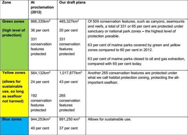 Thanks to our carefully targeted approach to zoning, the same number of conservation features are protected in green zones in the plans released today as those in 2012.