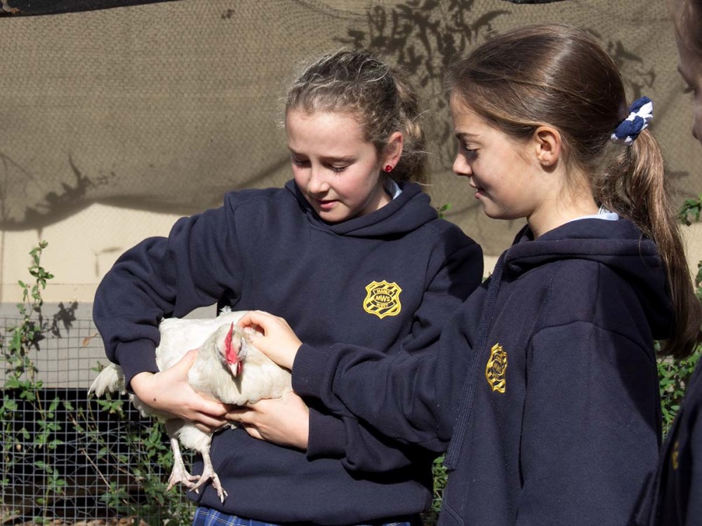Being a Chicken Wrangler is a big responsibility with students in Year 2 and 3 trained by students in Year 5 and 6. The older students lead the younger students in a buddy system, which strengthens their confidence and leadership skills.