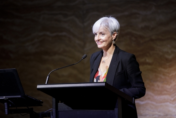 Professor Emma Johnston, Dean of Science at UNSW Sydney, introducing Vint Cerf. Photo: Ken Leanfore