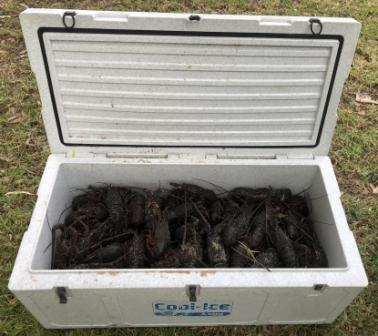 20 Jul 2018: NSW DPITwo men are likely to be facing hefty fines and up to ten years imprisonment after being found with more than 20 times their legal amount of Eastern Rock Lobsters.