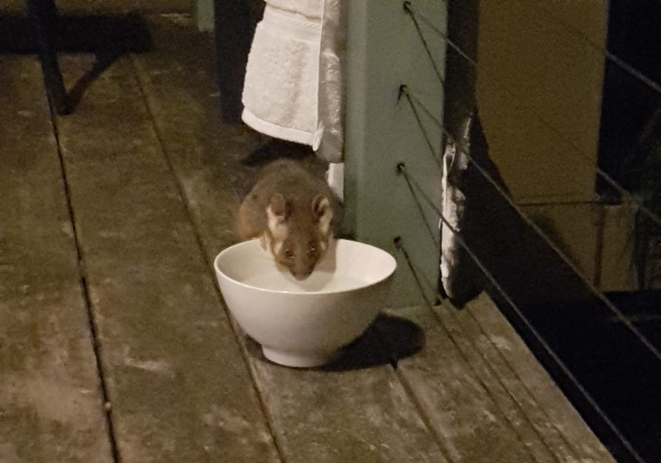 A shallow dish with twigs leading into and out of it is great for smaller lizards like slinks while this lovely, a Newport ring-tailed possum, will quite happily sup from a deeper dish. Photo courtesy Sonja Elwood.