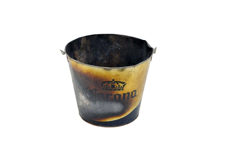 A metal tin was found for the smoking ceremony — given the unplanned nature of the event, the only suitable vessel they could find was a Corona beer bucket. Seeing the irony in the serendipitous use of this object, the “Corona Smoking Bucket” was collected for The Wadjemup Museum on Rottnest Island in March 2020.
