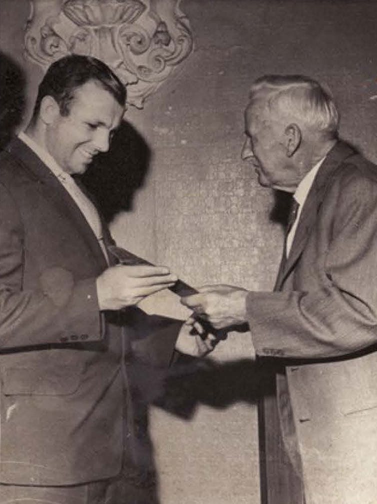 Burchett and Purdy met with Gagarin and his interpreters at the State Committee of Foreign Cultural Relations in Moscow, on July 9 1961. They wrote a book about it, contextualising the interview within the broader Soviet space program.