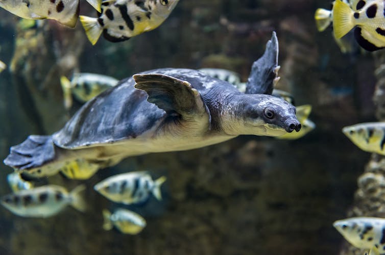 It is also the last surviving species of a group of tropical turtles called the carettochelyids, which once lived throughout the northern hemisphere. Scientists thought pig-nosed turtles only arrived at Australia within the past few millennia, as no pig-nosed turtle fossils had ever been found here – or so we thought.