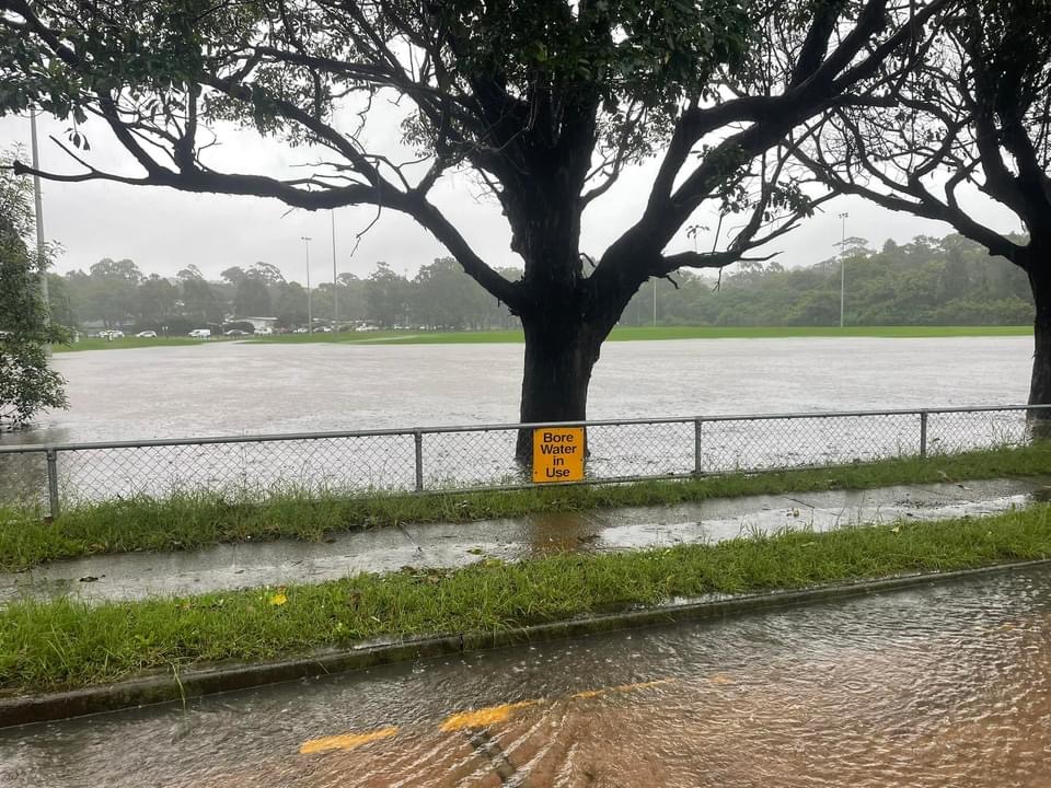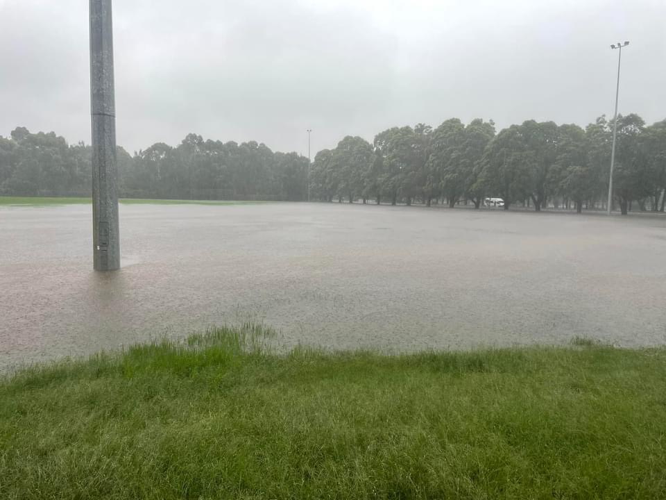 Mitchelton football field No 2 in Brisbane after rains there - February 28, 2022. From the Mitchelton football Club Facebook page.