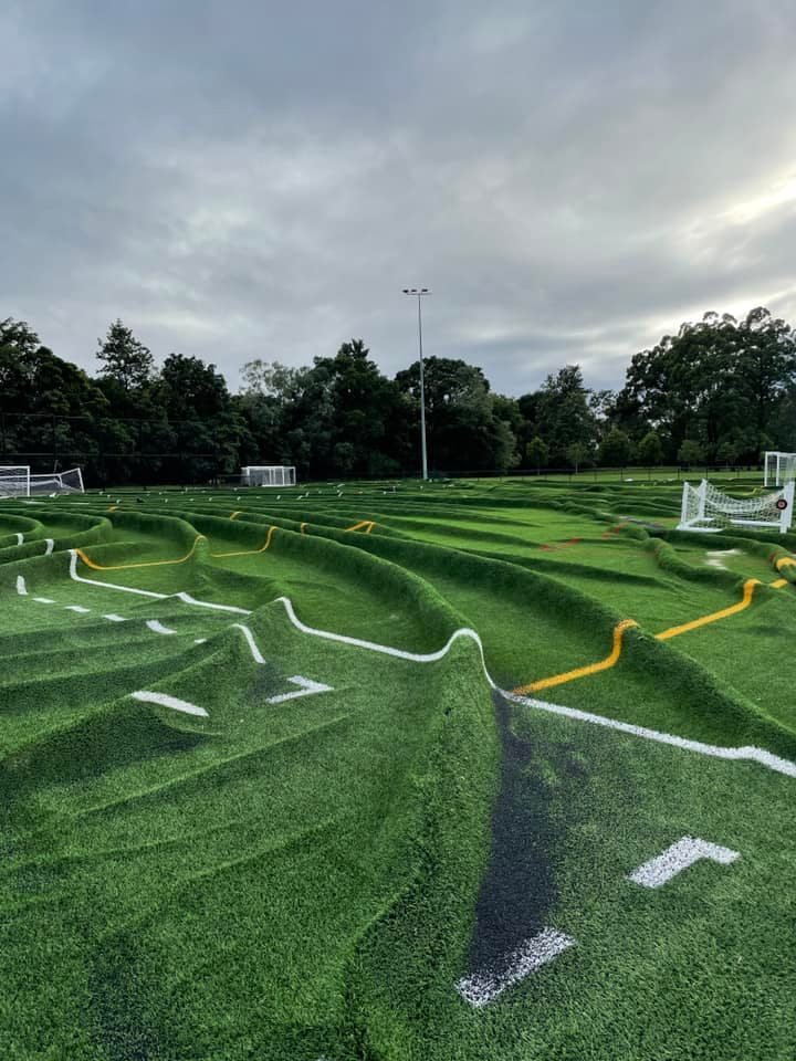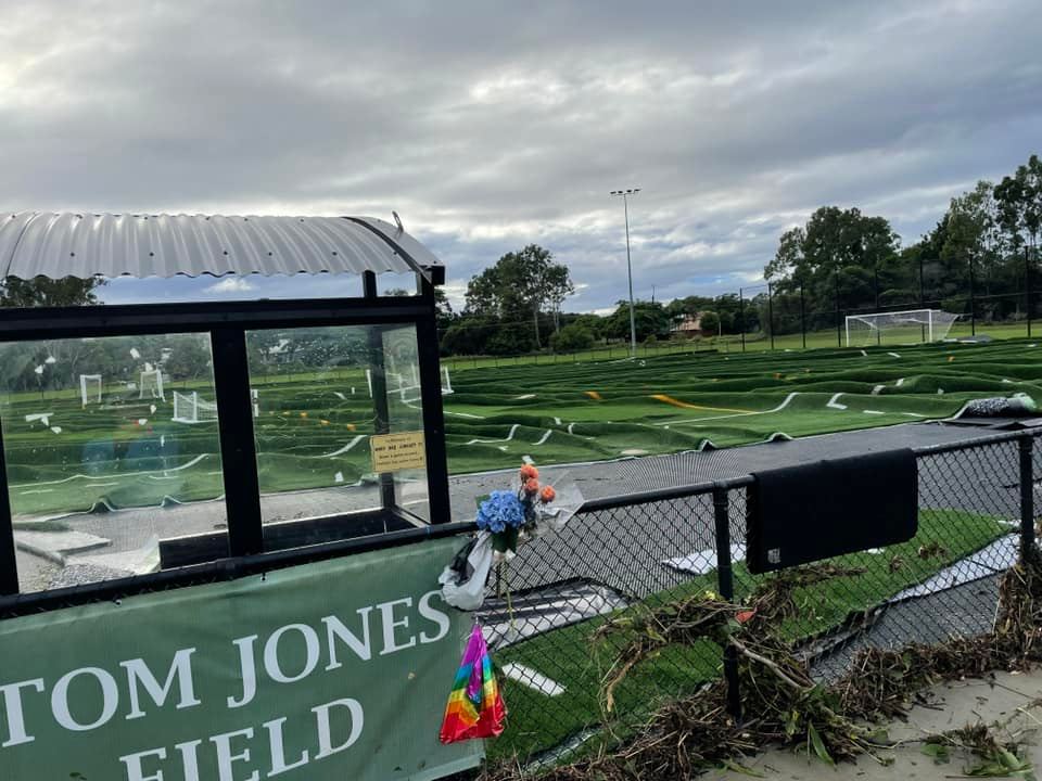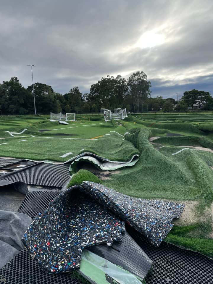 Mitchelton football field No 2 in Everton Park Brisbane after rains there - February 28, 2022. The rest of their fields are grassed areas and these were quickly restored/cleaned to allow commencement of their Season in March. From the Mitchelton football Club Facebook page.