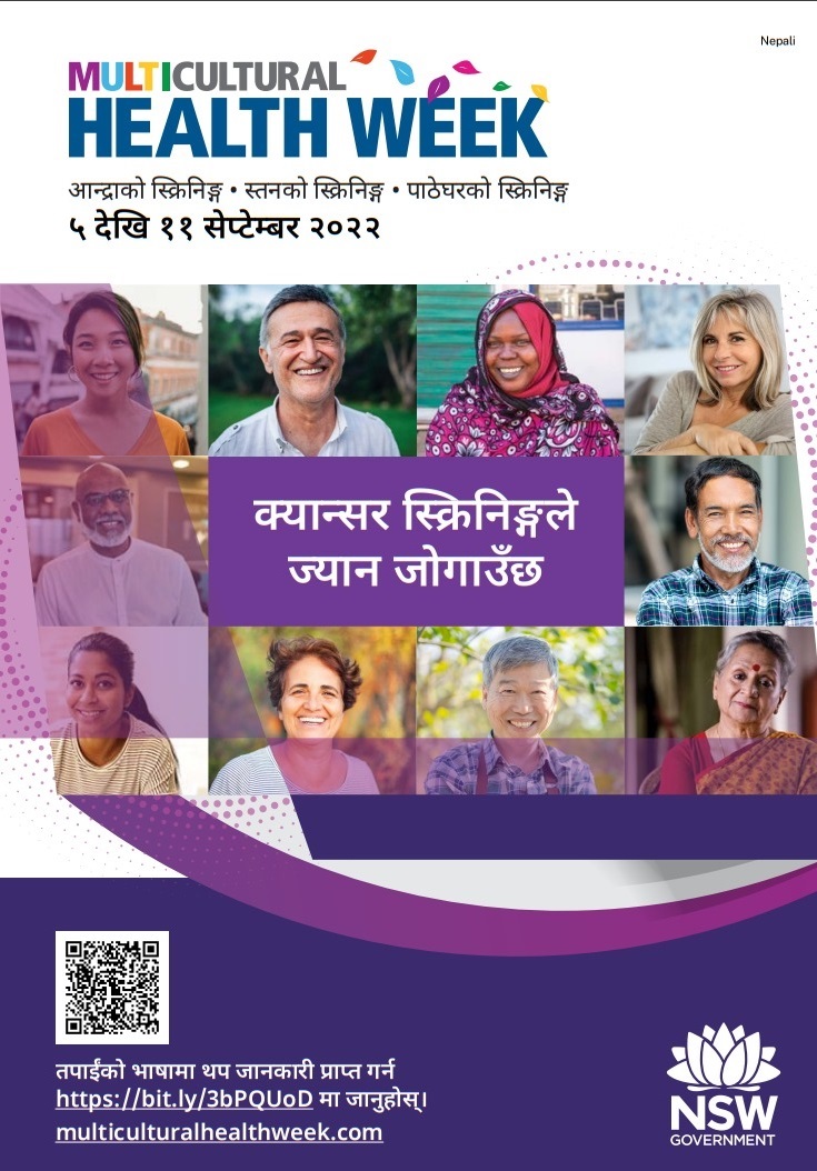 - A one-minute video to promote Multicultural Health Week 2022 with a focus on the three cancer screening programs in Arabic, Cantonese, Korean, Mandarin, Vietnamese and English