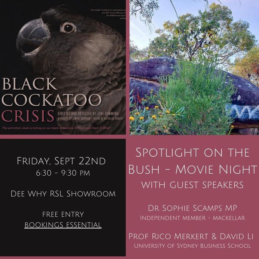 - 7:00 pm - 9:00 pm - Screening of Black Cockatoos Crisis Movie and Guest Speakers
