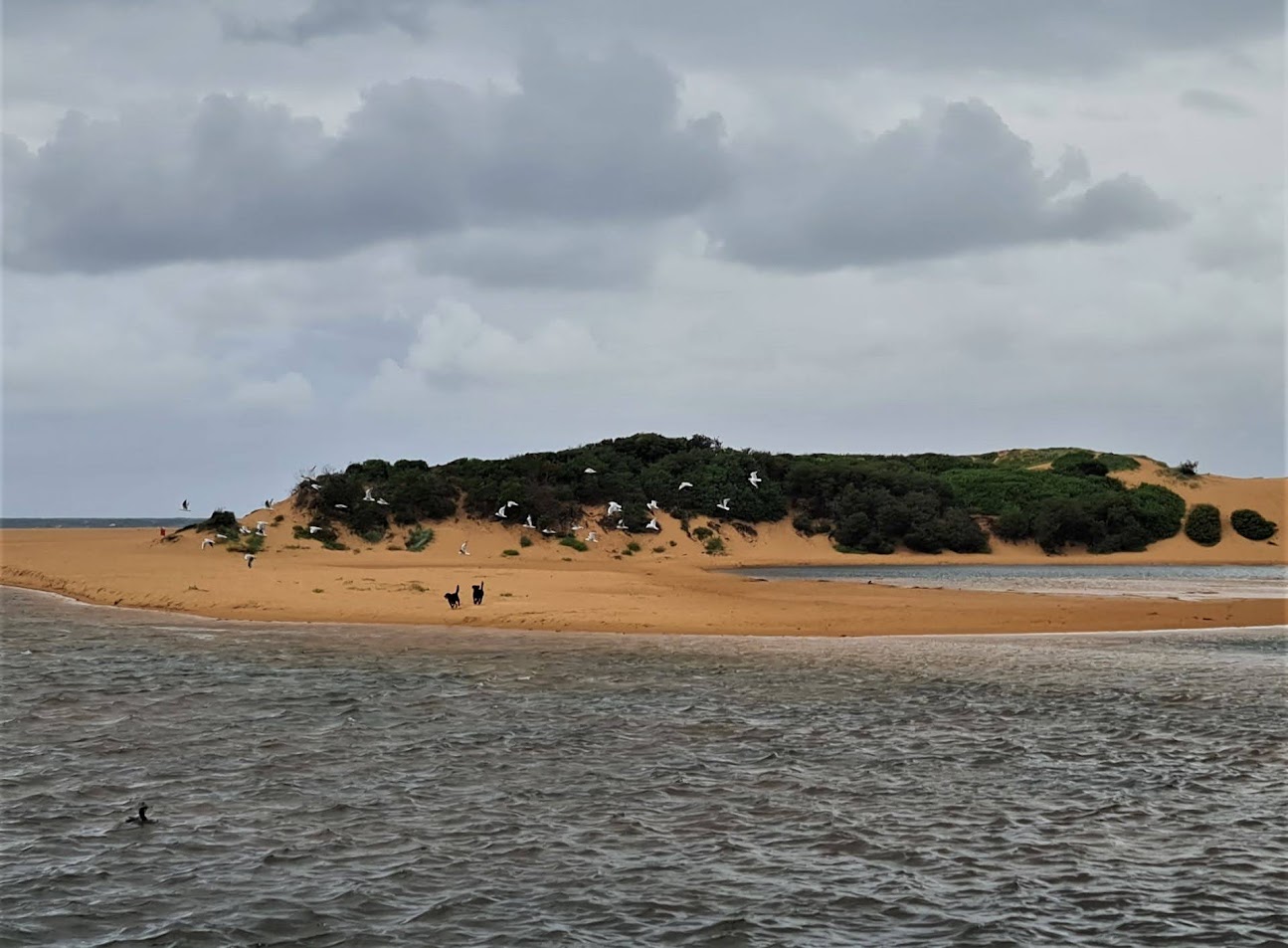 Dogs chasing seagulls off sandbar at North Narrabeen Lagoon January 2024 - no owner in sight. This is also a feeding ground for numerous shorebirds at this location. Photo supplied.