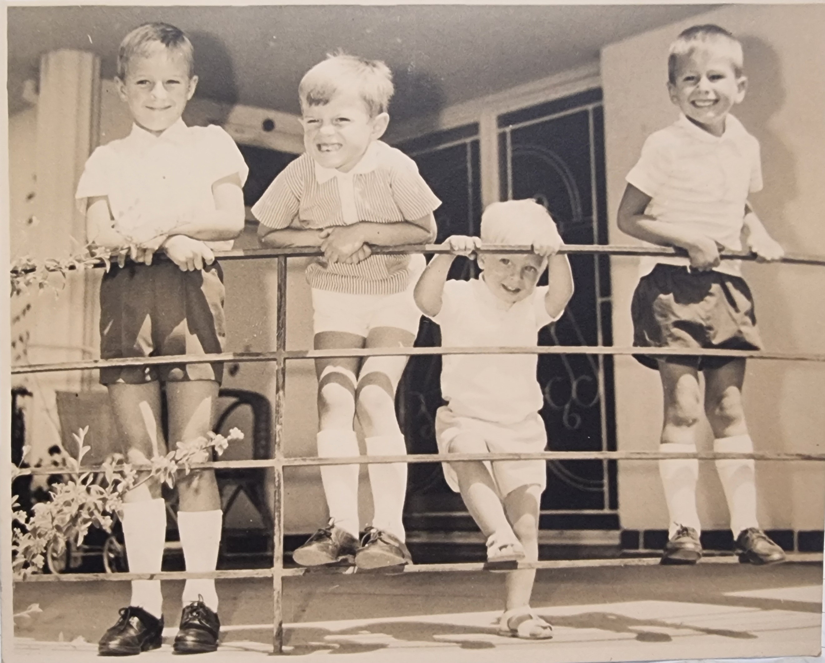 Judith's boys as little ones in WA (1971?) , and the 4 boys recently with her at her Granddaughter’s wedding, 2024