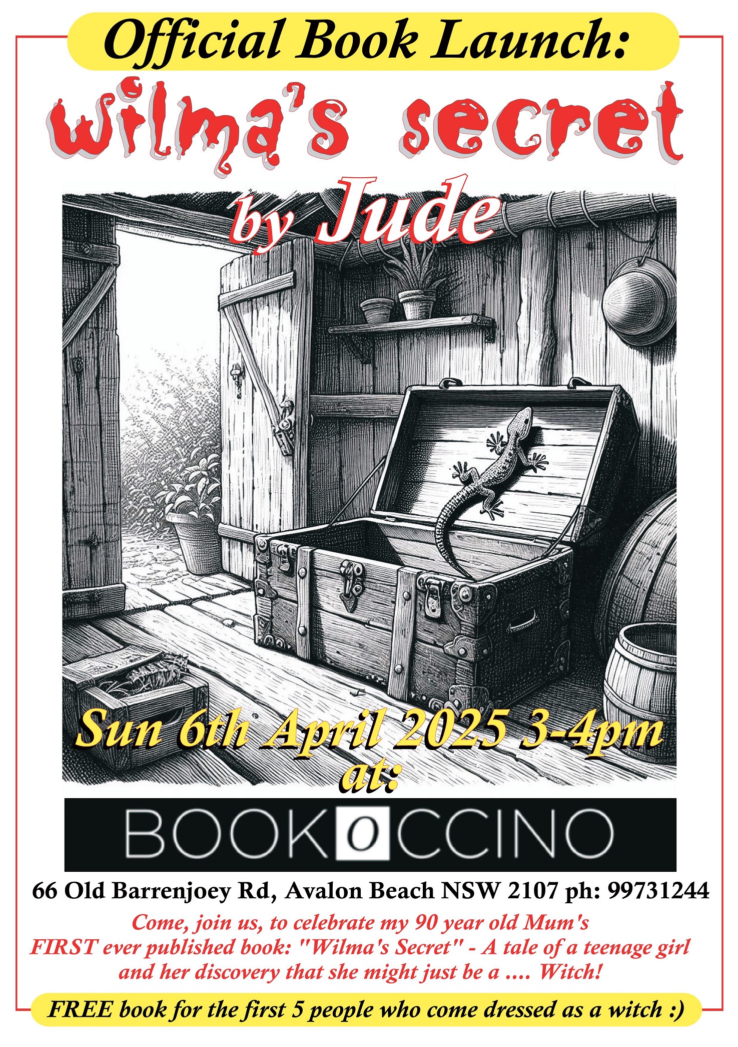 Your first book, “Wilma’s Secret”, will be launched at Bookoccino on Sunday April 6th 3-4pm – what is the story about and what ages is it for?
