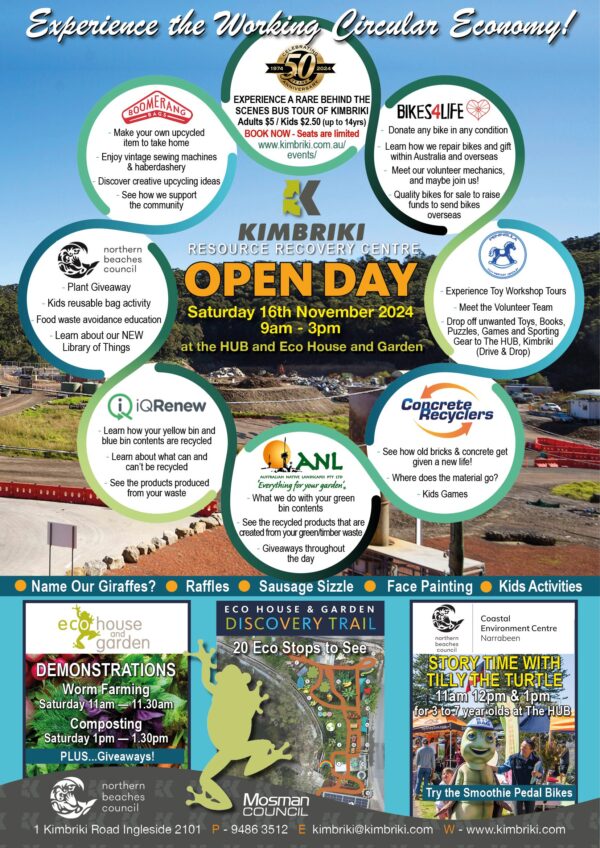 Join the Kimbriki team for the 2024 Kimbriki Open Day. Celebrating 50 years of dedication and operations in the waste management and resource recovery industry located at Ingleside.