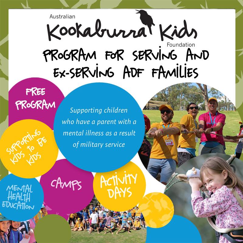 “We are proud the Government has recognised the success of the Kookaburra Kids program and endorsed our ability to deliver a program to children from service and ex serving ADF families who have been affected by mental illness as a result of military service.”