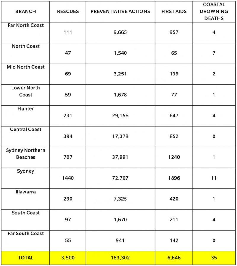 The total number of coastal drowning deaths for the season was 35 (since 1 July 2018),down on the previous season. While preventative actions by our lifesavers on the beach were up significantly, a positive trend for NSW.
