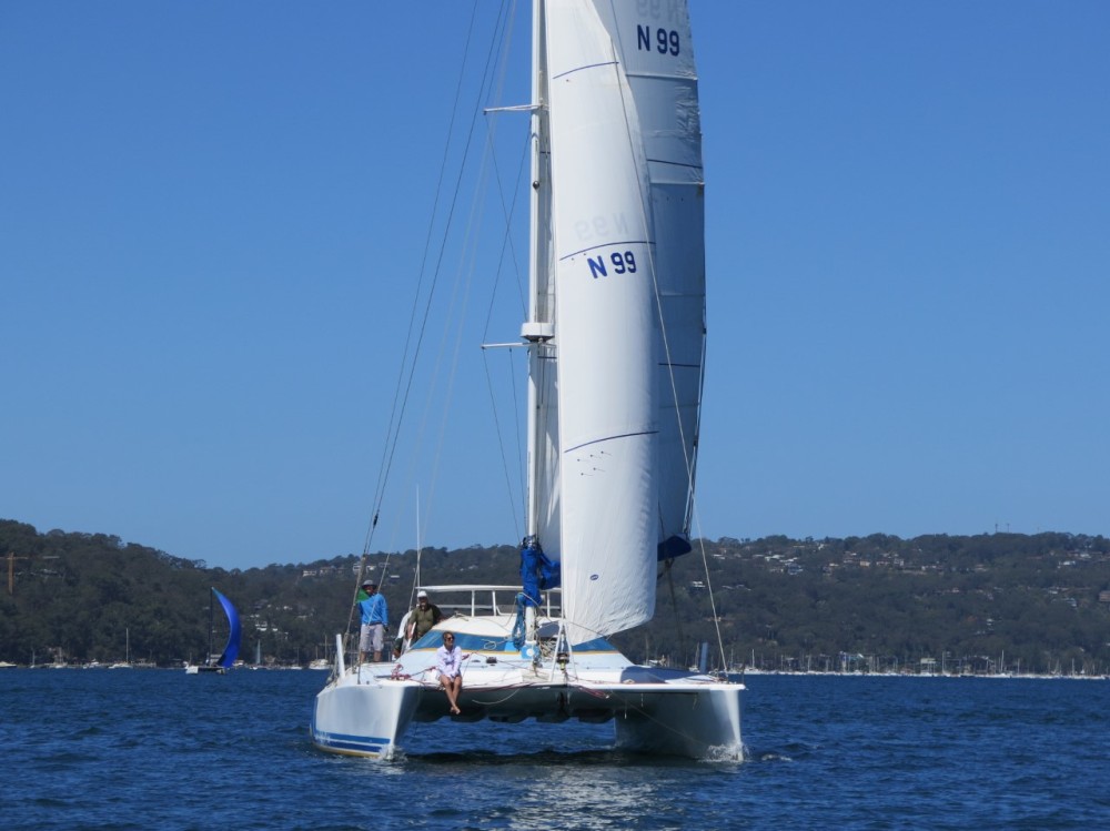 While numbers were down this year for the 22nd consecutive running of the Lock Crowther Multihull Regatta held on the October long weekend, visiting boats including Geoff Floyd's Corsair 28 ‘50/50’ from Victoria, Mike Kirby's large Schionning catamaran 'Viento', Greg Bridge's Crowther Windspeed 31, 'Bob', both from Cronulla and Shane Russell's Lynx catamaran 'Foxy' from Wangi in addition to the Pittwater locals, really helped to make the 16 boat Regatta feel special.As did Beryl Crowther's attendance at the Presentation Dinner - including her sailing on Jim Geddes 45’ venerable Crowther catamaran ‘Te Arawa’ on Saturday in winds gusting to 30 knots!
