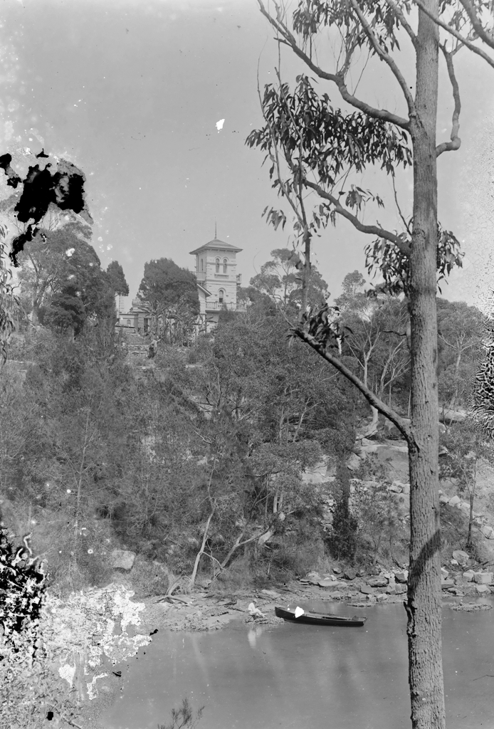Little is known about Macpherson. Edward’s choice of Italianate styling may have been influenced by a love of Italian landscape art. Certainly early photographs of the house, in its remote and wooded setting on Middle Harbour, evoke the 17th century art of Claude Lorraine and the Campagnia area of Italy. The most characteristic Italianate element of the house is the square tower with its bracketed eaves, arched window and balcony. Interestingly the stone is all heavily ‘rusticated’, or textured which is a characteristic more usually associated with Gothic design which itself was the house style favoured by those of Scottish ancestory. Italianate structures are typically rendered in keeping with the idea of Renaissance civility. Red terracotta tiles capped off the allusions to Italy. A boat harbour was built at the end of the garden in the early 1890s.