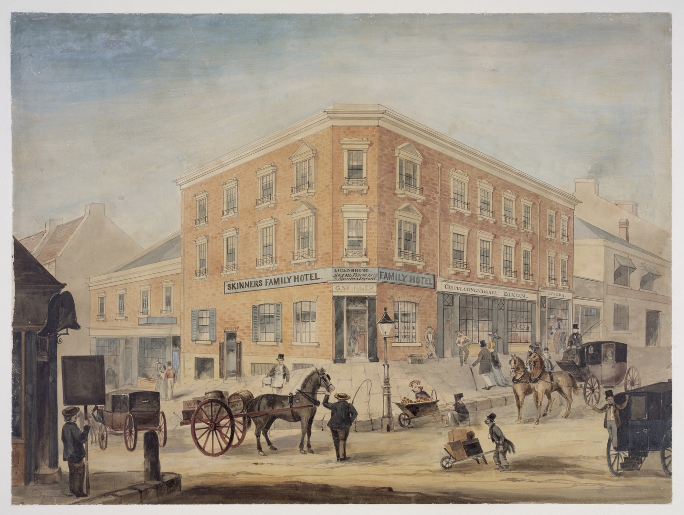 Corner of George and Hunter Streets, ca. 1849 by Andrew Torning - Item; a1528487h, courtesy Dixson Galleries, State Library of New South Wales