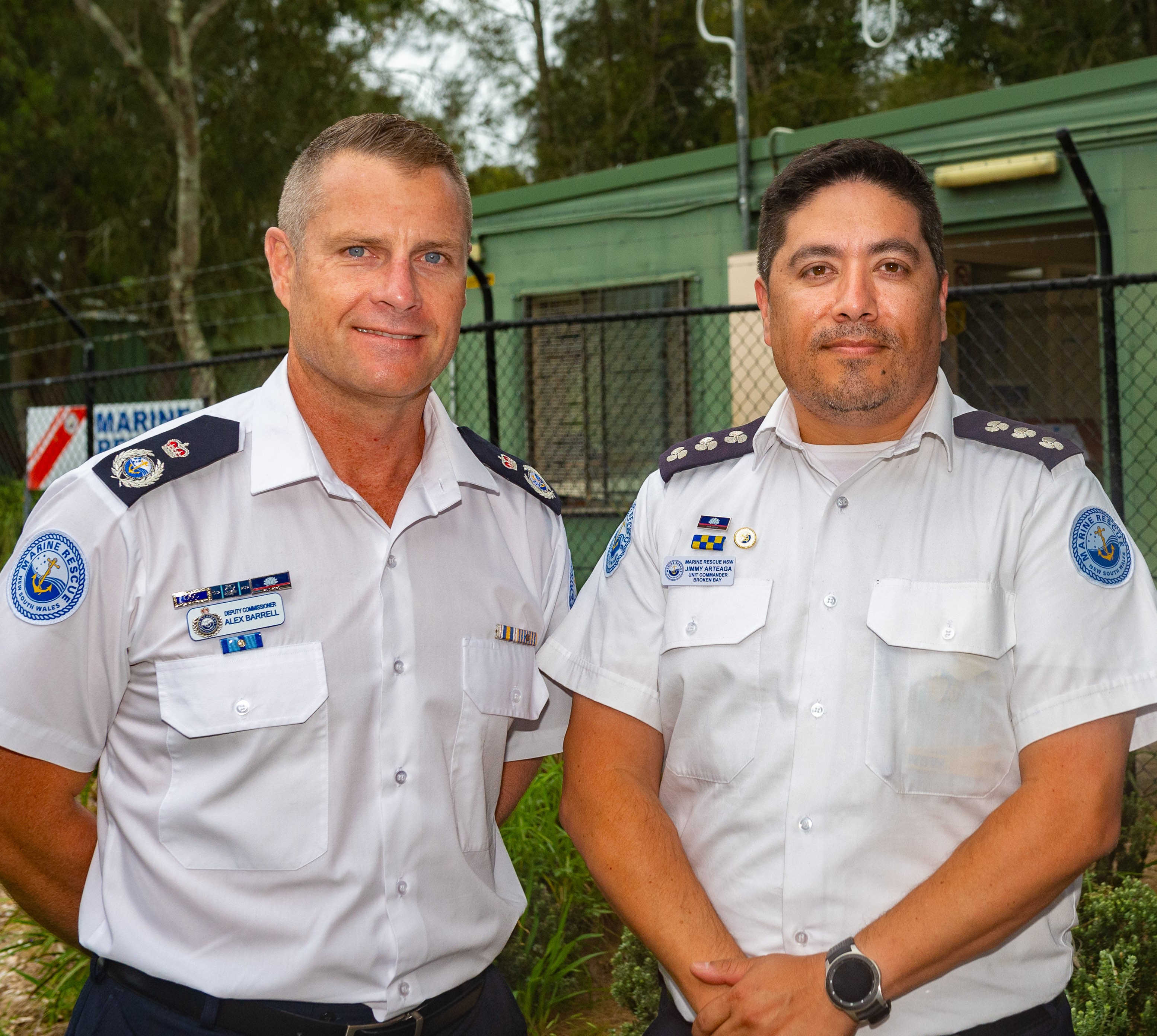 Deputy Commissioner Alex Barrell and Jimmy Arteaga. Unit Commander of Marine Rescue Broken Bay. Photo: Michael Mannington, Community Photography