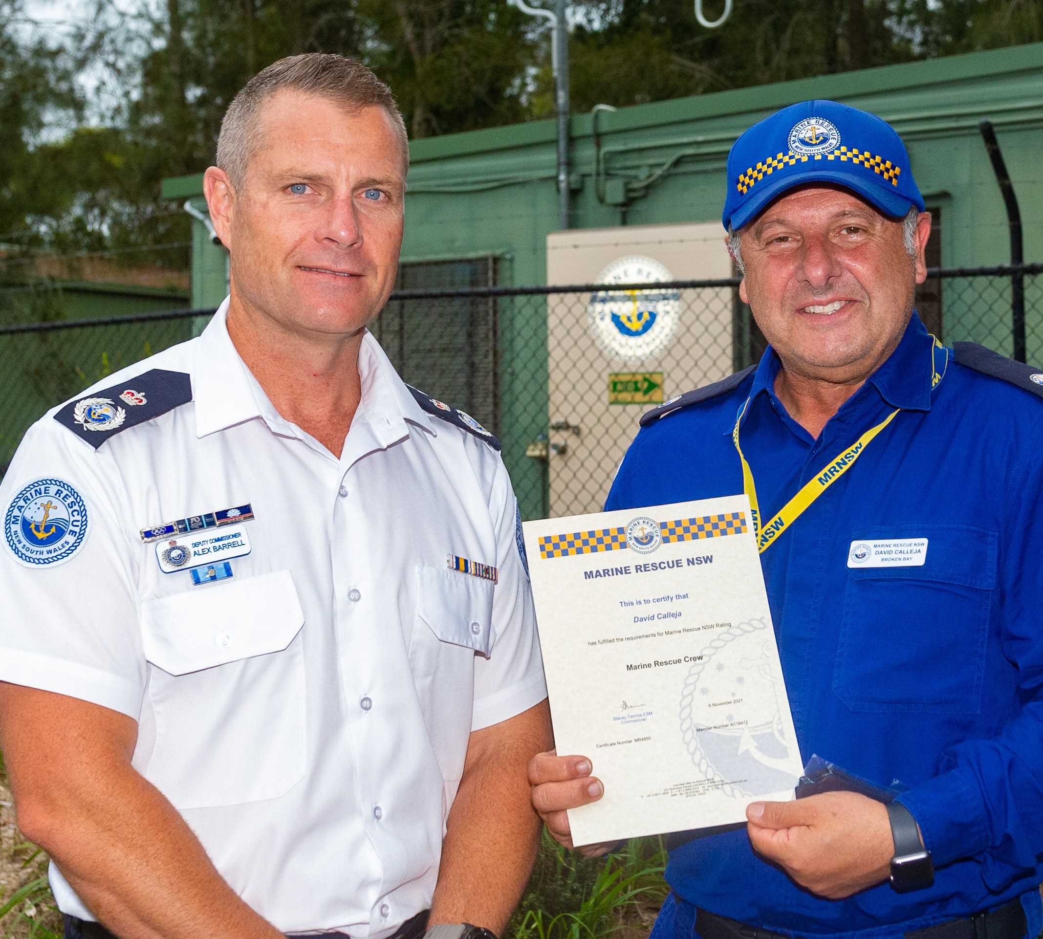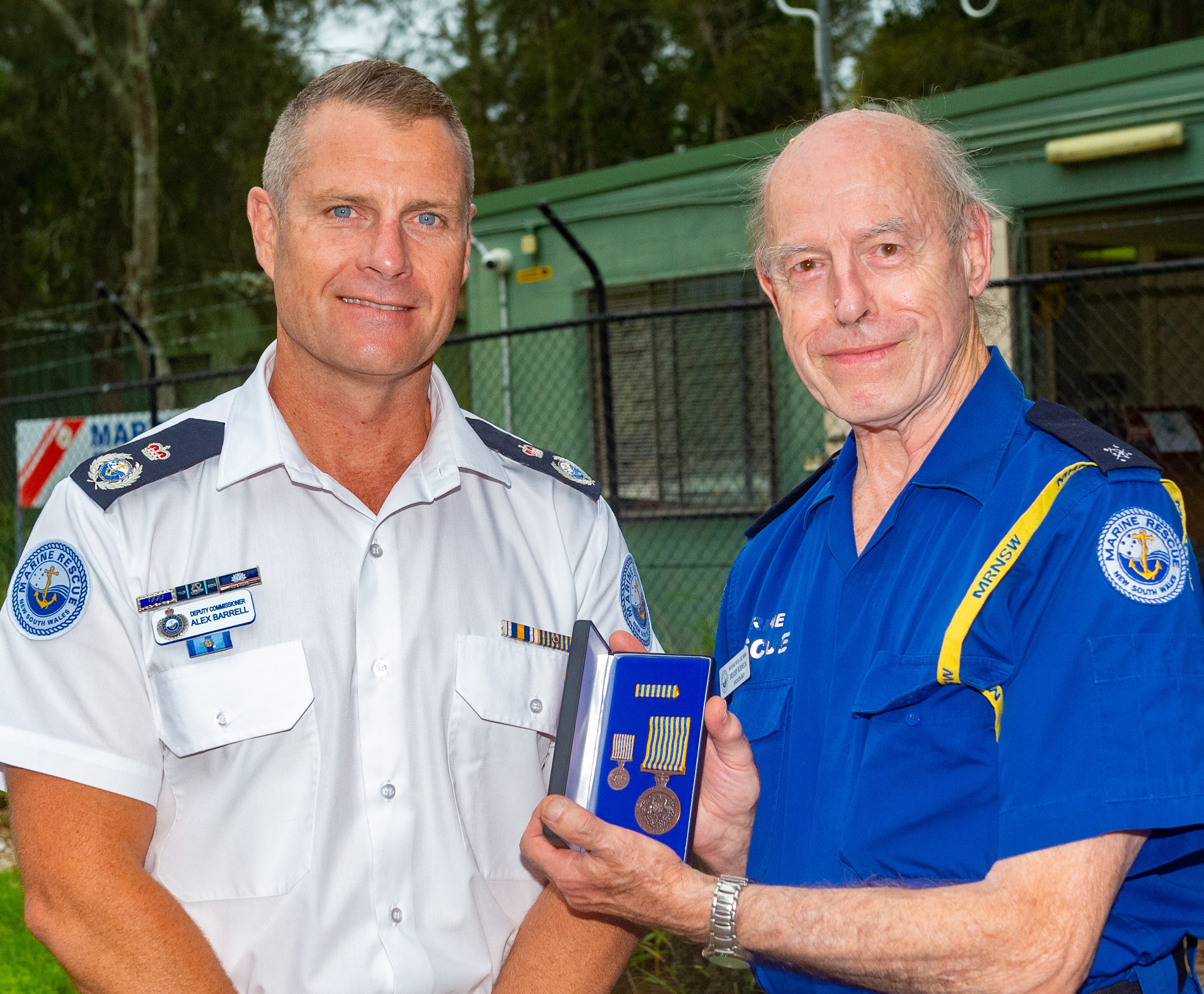 Marine Rescue New South Wales Deputy Commissioner Alex Barrell attended to congratulate the members individually and present the awards.