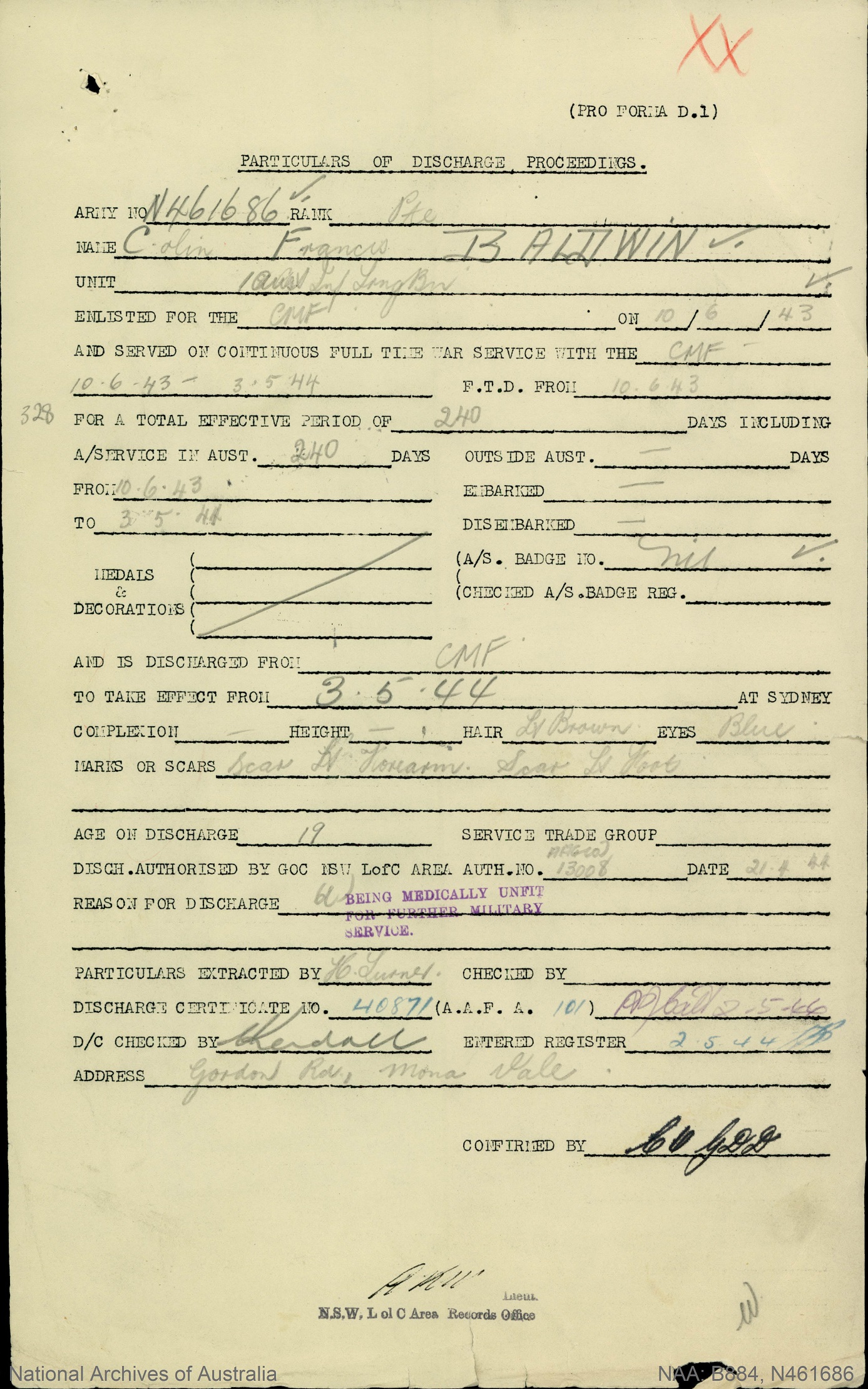 Constable, Cpl E. J. NX19450, Neutral Bay, Med.