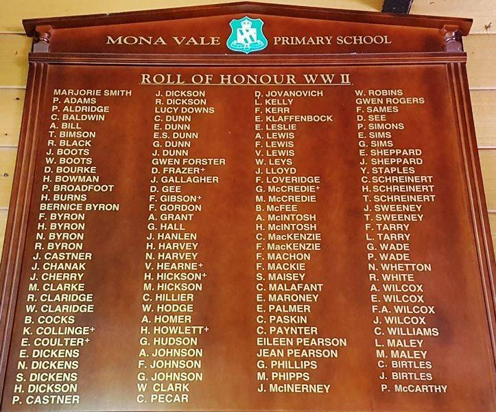 There are 125 names on the Mona Vale Primary School World War Two Honour Roll, to remember the students who had attended this school who went on to serve in this conflict.