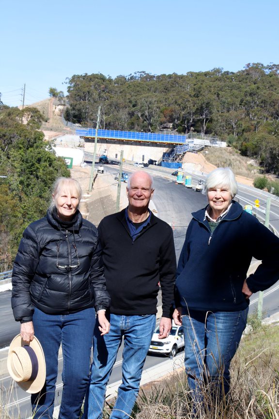 Photo: David Palmer, Jacqui Marlow and Marita Macrae celebrate the June 2017 announcement of a fauna bridge to be built over Mona Vale Rd East.