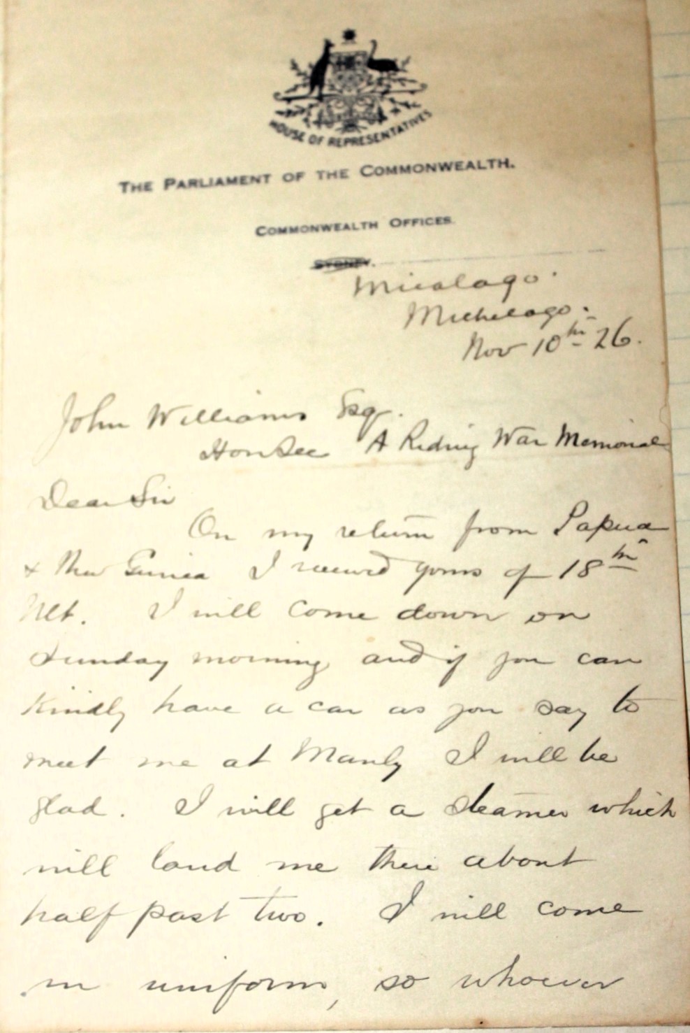 Major General Sir Granville de Laune Ryrie KCMG, CB, VD (1 July 1865 – 2 October 1937) was an Australian soldier and politician who served in the Second Boer War and the First World War. Ryrie was born in Michelago, New South Wales on 1 July 1865, into a farming family. His father was Alexander Ryrie, a grazier and member of the New South Wales Legislative Assembly (1880–91) and of the Legislative Council (1892–1909), and his mother was Charlotte, née Faunce, both born in New South Wales. Granville was educated at Mittagong and at The King's School, Sydney; he later became a jackaroo, and eventually managed his own property. He was also a good heavyweight boxer. In 1896 he married Mary McFarland, whom Ryrie nicknamed "Mick". Mary McFarland was the daughter of Sir Alfred McFarland (1824–1901), a judge in New South Wales.SOLDIERS' MEMORIAL AT MONA VALE.