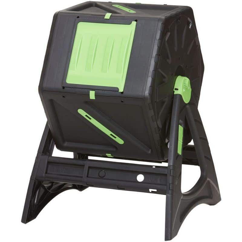 Weatherproof UV-resistant plastic feet. Internal ventilation speeds up the process. Heavy-duty construction for year-round composting. Easy to open doors