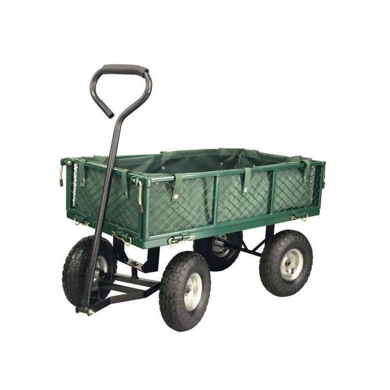 10" Pneumatic tyres with poly rims. 250kg loading capacity. Durable poly lining. Removable sides. 1000L x 485W x 830Hmm.