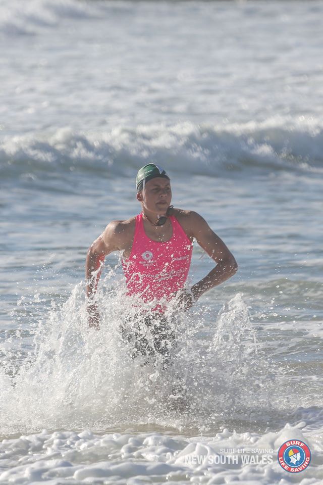 “I’m actually really stoked with my swim. I’m actually more of a ski paddler or an ironwoman, but I always have a go at the swim because it’s something I train for. And I was stoked to swim in the top pack with all the girls getting amongst it and on the way in I was quite lucky to jump on an awesome wave as a run up the beach,” said Emily Maythers.