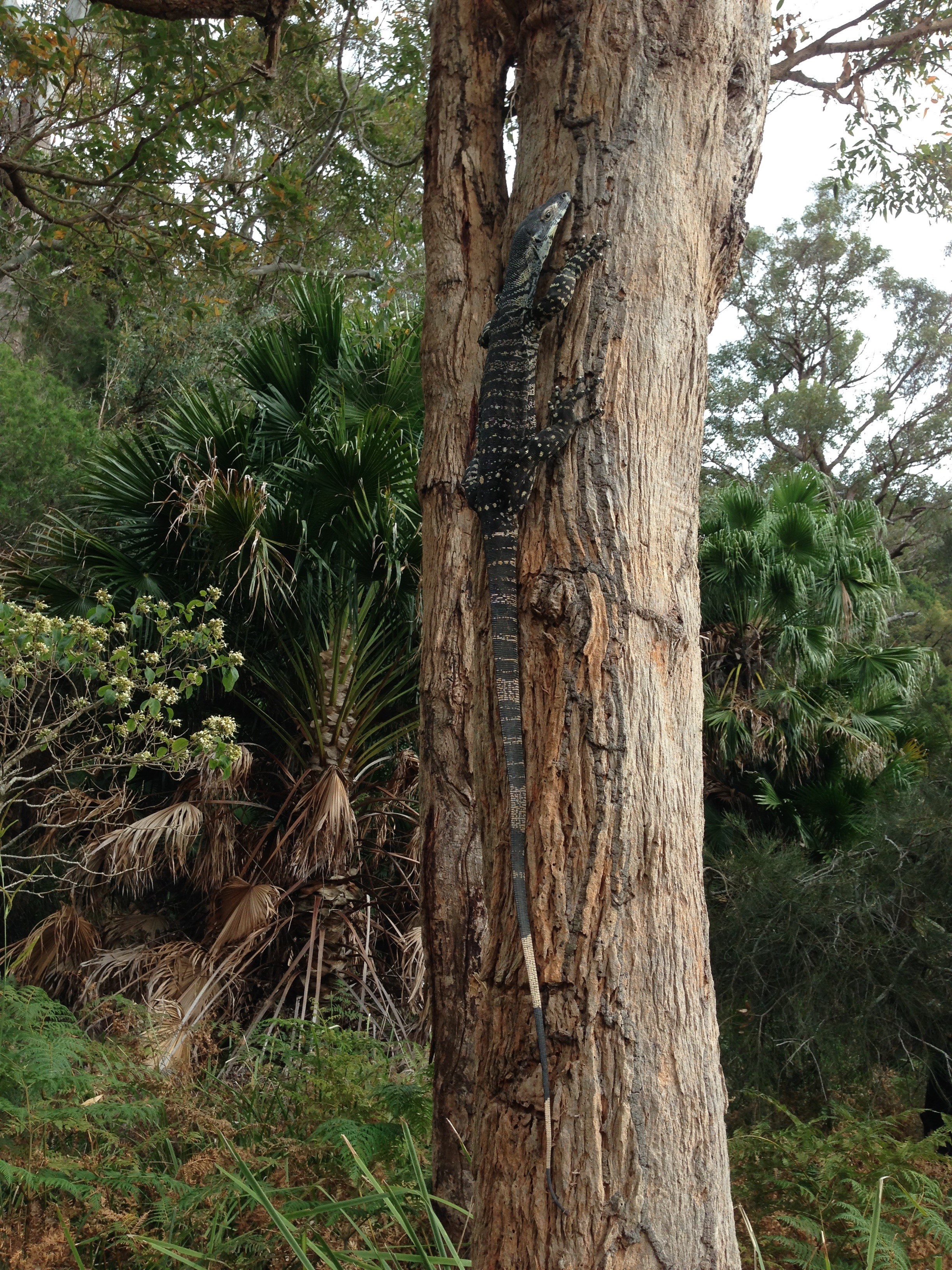 There are sometimes encounters with the local wildlife. The most memorable for me, after working in thick bush, having heard a sea plane land on the beach & take off again while we worked, was returning to the beach to see a couple, standing thigh-deep in the water, clutching each other & quaking, while they watched a BIG lace monitor on the sand, devouring the contents of their gourmet picnic hamper!