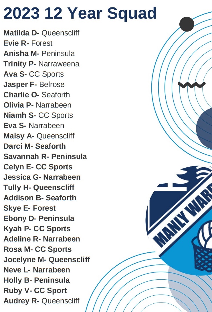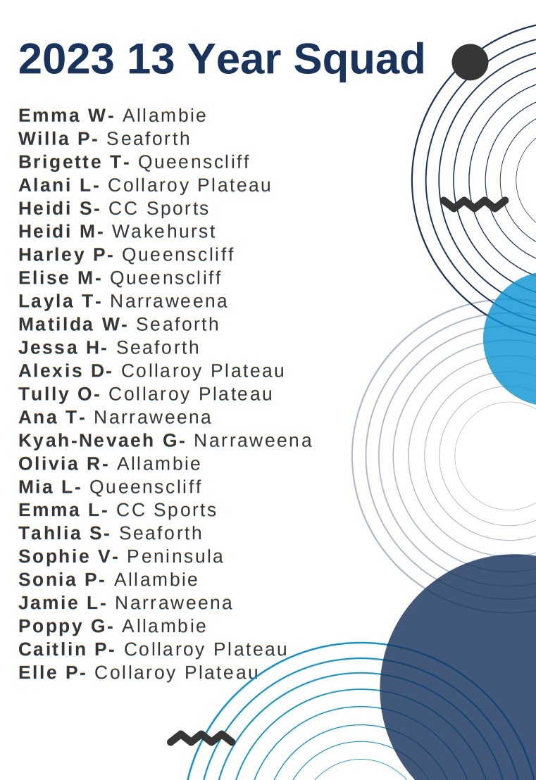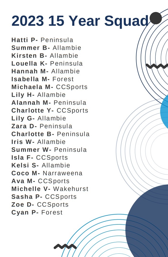 Finally, congratulations to all members who have been selected into the 2023, 12, 13, 14 and 15 year Representative Squads - go girls!: