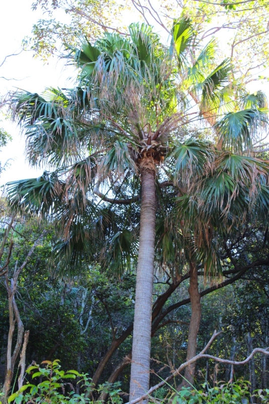 A shrub layer is present in most areas dominated by Eupomatia laurina and Synoum glandulosum and juveniles of the trees Livistona australis and Pittosporum undulatum. Other shrubs species present with patchy occurrences include Wilkiea huegeliana (Veiny Wilkiea), Notelaea longifolia, Pittosporum revolutum (Rough-fruited Pittosporum), and Elaeocarpus reticulatus (Blueberry Ash). Vines are common in the understorey and include the species Morinda jasminoides (Sweet Morinda), Smilax australis (Lawyer Vine), Geitonoplesium cymosum (Scrambling Lily).