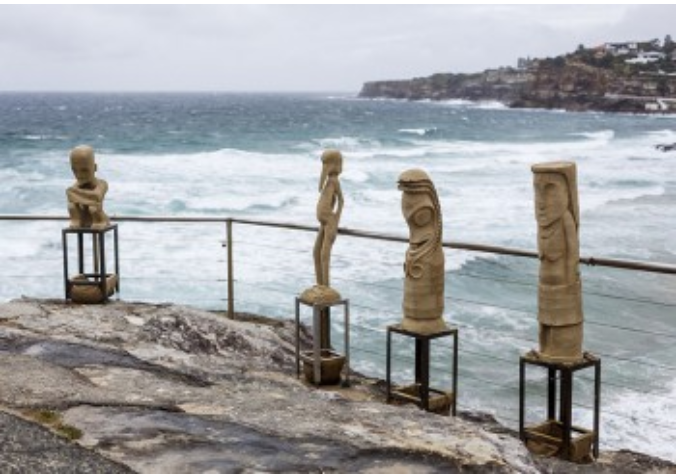 Ocean Sentinels comprises a series of traditional figures from Pacific Island nations such as Australia, New Guinea, Palau, Fiji, Vanuatu, Kiribati, Marshall Islands, New Zealand, Samoa, and The Philippines. They represent the communities under threat from sea level rise due to human-induced climate change and those suffering the impacts of ocean plastic pollution.