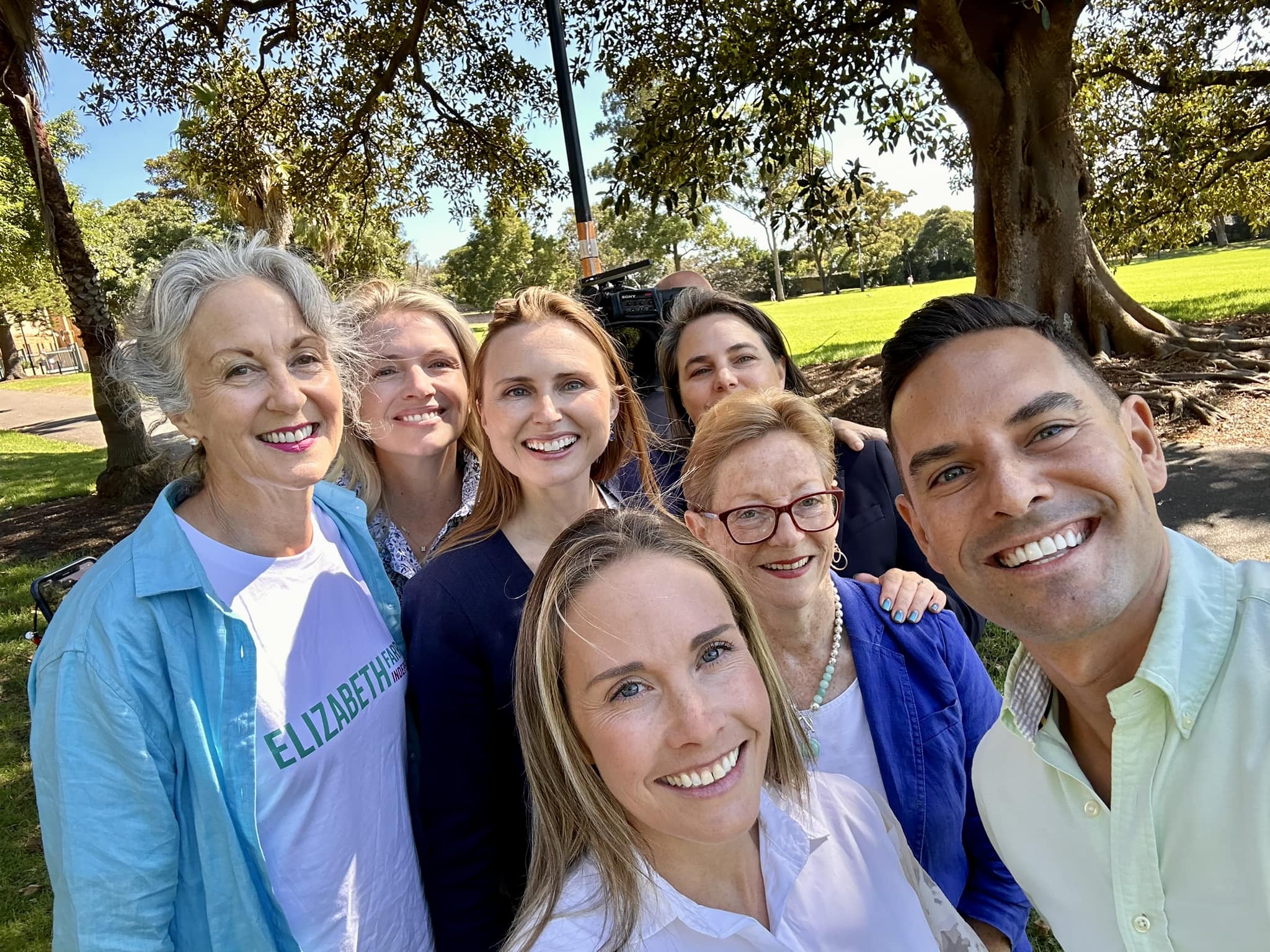 L to r: Elizabeth Farrelly, Karen Freyer, Joeline Hackman, Jacqui Scruby, Helen Conway, Victoria Davidson (at back) and Alex Greenwich MP. Image: Facebook