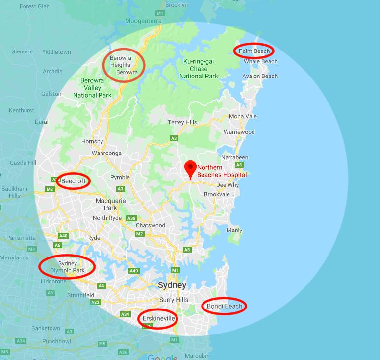 Palm Beach as Far from New Northern Beaches Hospital as Bondi