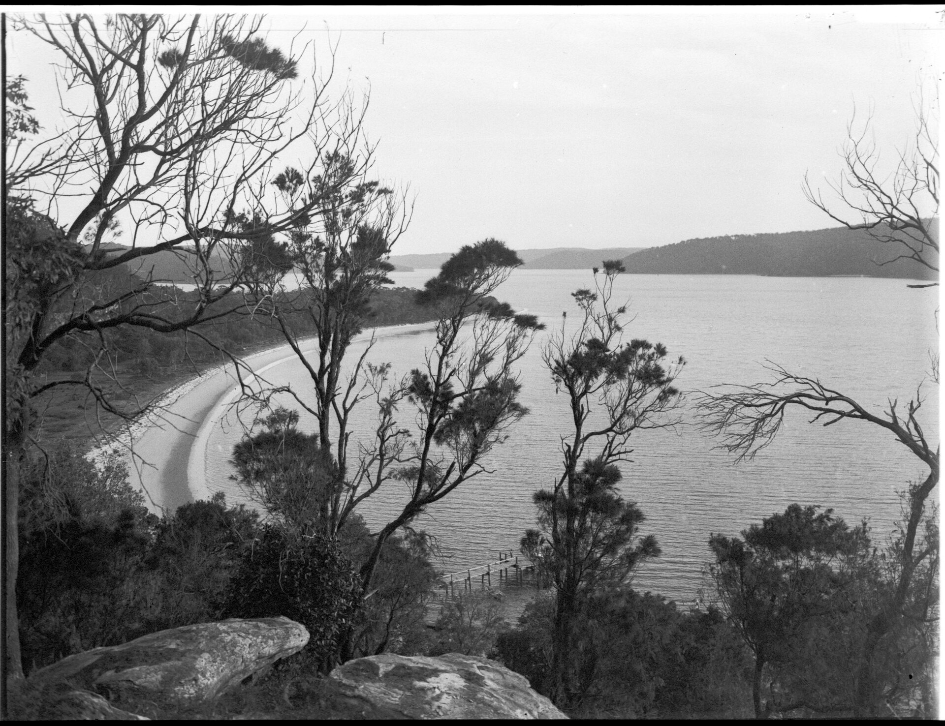 'View on Pittwater' [Pittwater (NSW) bays beaches] 1912; first wharf at Snapperman can be seen through the trees. Government Printing Office 1 - 12140, Item: FL2703035, courtesy NSW State Records and Archives