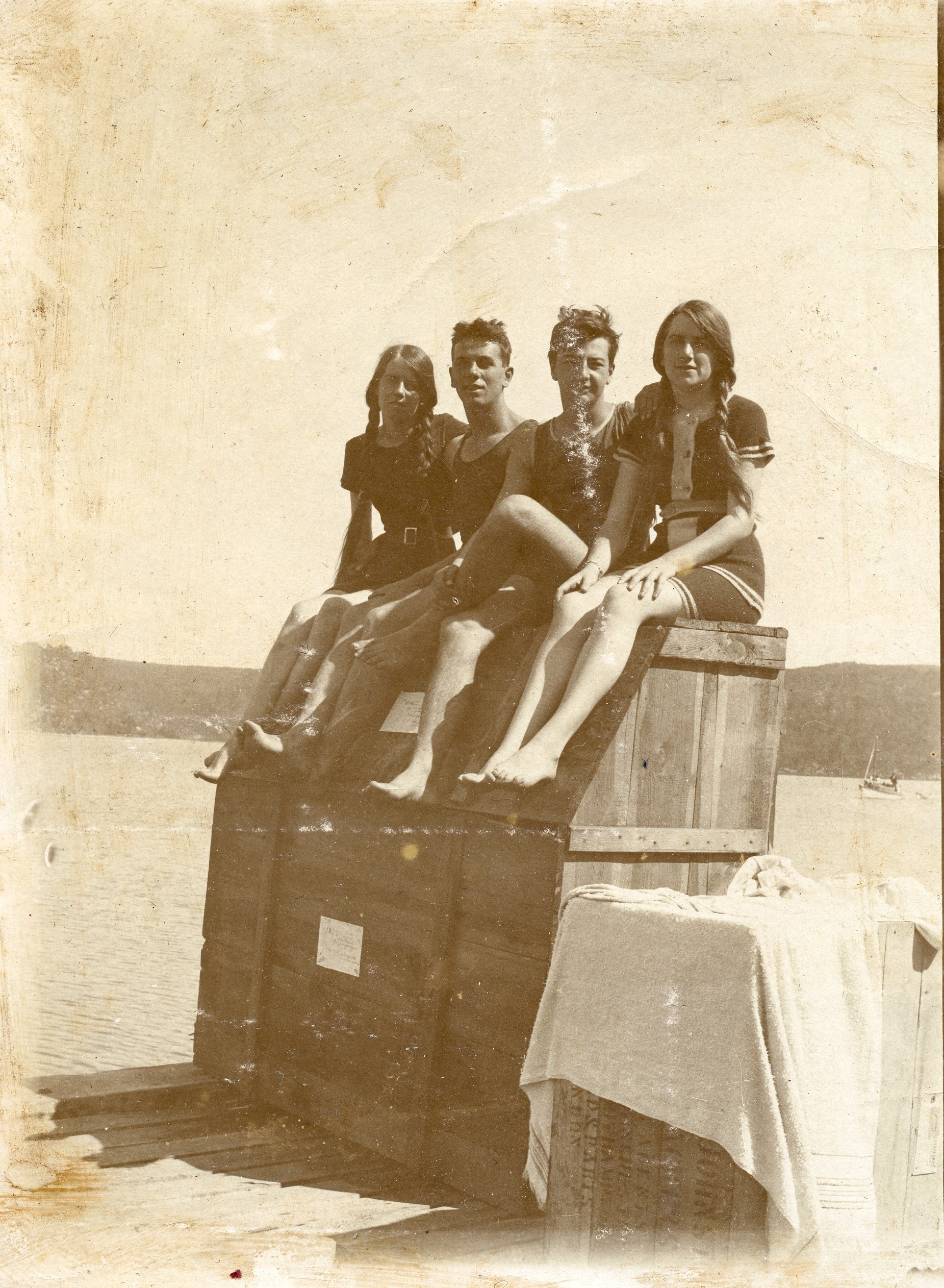 Hilda and Fanny Milton with unknown Boys on Palm Beach Wharf, 1913. Photo courtesy Milton Family and Goddard Family history researcher W. Goddard