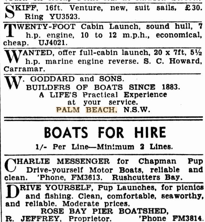 PALM BEACH (1925, April 9). The Sun (Sydney, NSW : 1910 - 1954), p. 19 (FINAL EXTRA). Retrieved from http://nla.gov.au/nla.news-article224048275