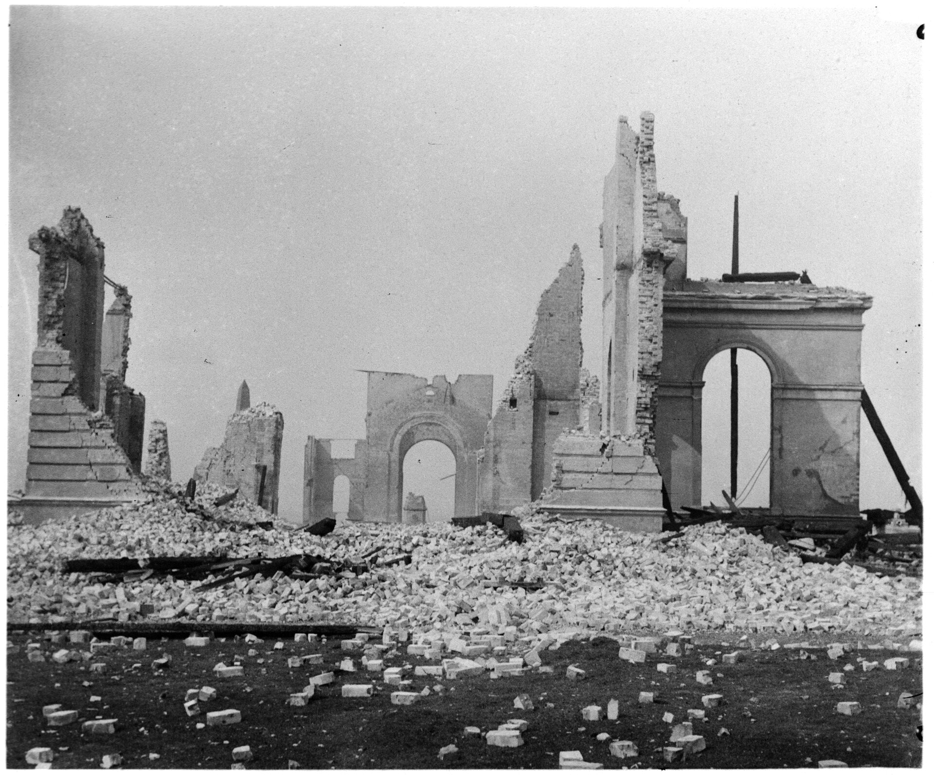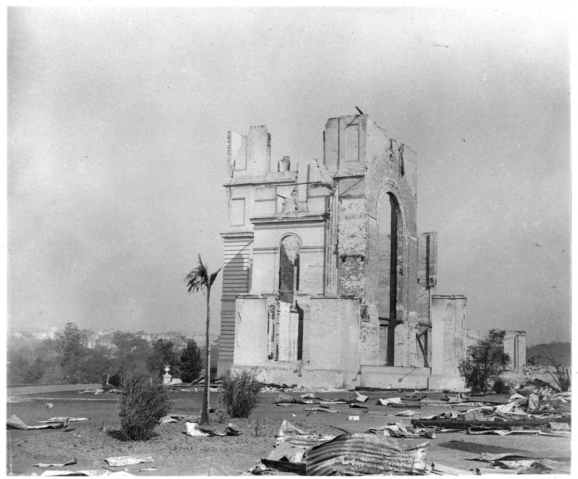 Garden Palace ruins after fire, taken from Garden Palace Grounds- courtesy Government Printing Office 1 - 07018, NSW Records and Archives