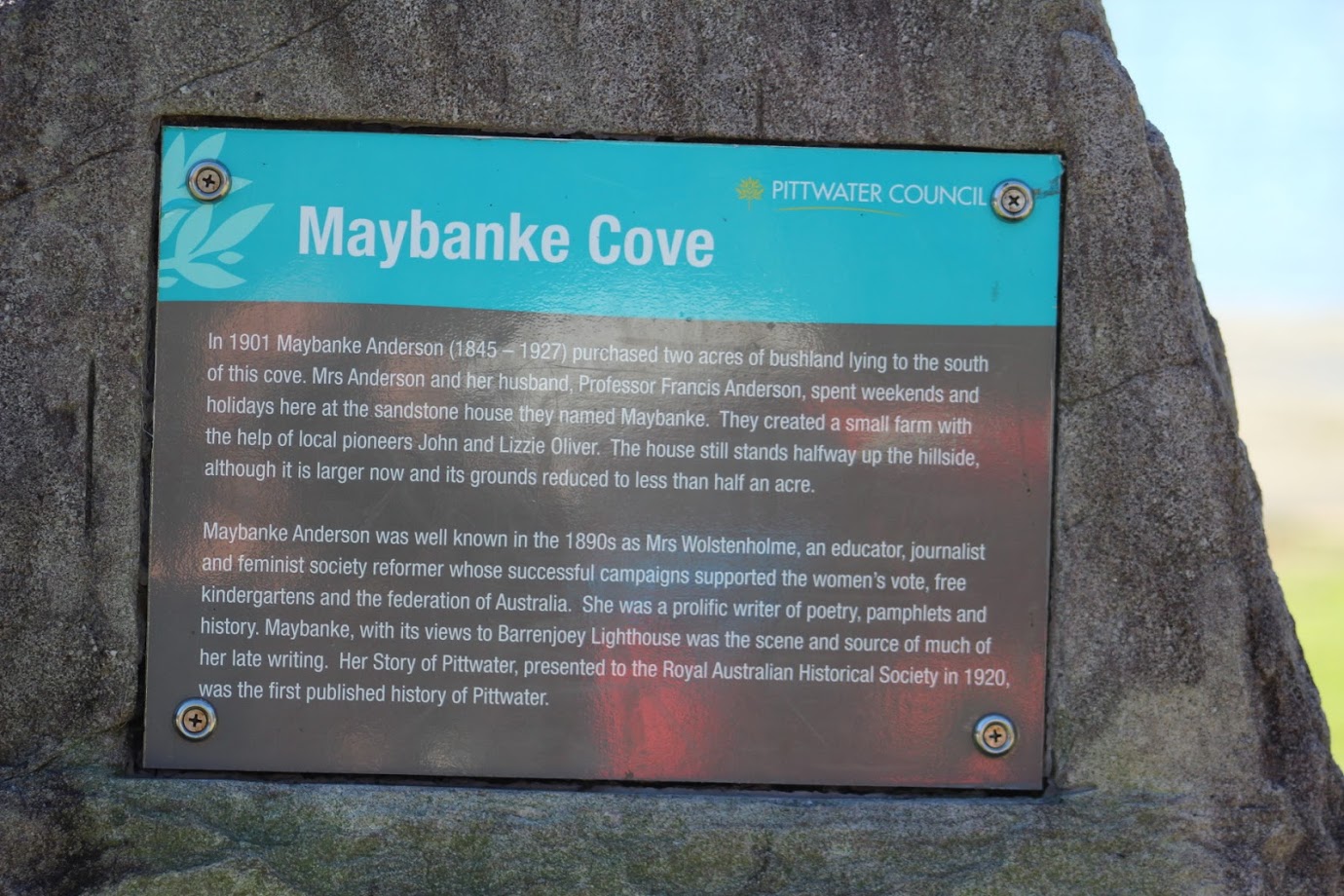 The other section nearby goes back to one of the earliest of the European settler families in the Pittwater area. On September 8th 1881 Honorah Collins, formerly of what we today call Careel Bay and Avalon Beach, purchased from Therry’s estate the 80 acre grant at Bayview, next to Winnyjimmi Swamp, for £80, which was the market value of the land at the time. Her daughter Katherine, married name Roche, became the postmistress at Bayview in 1882.