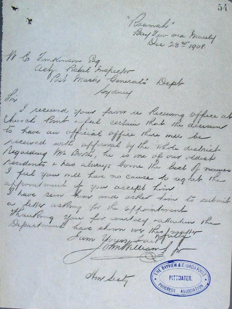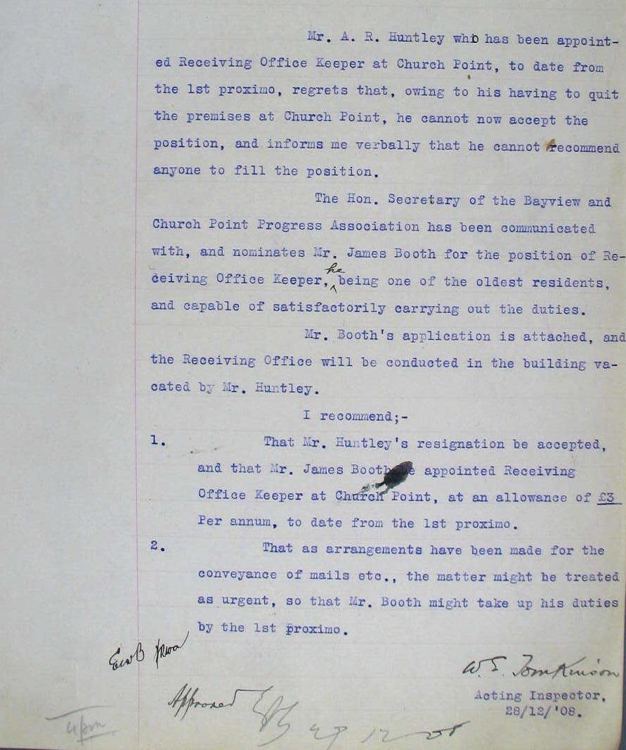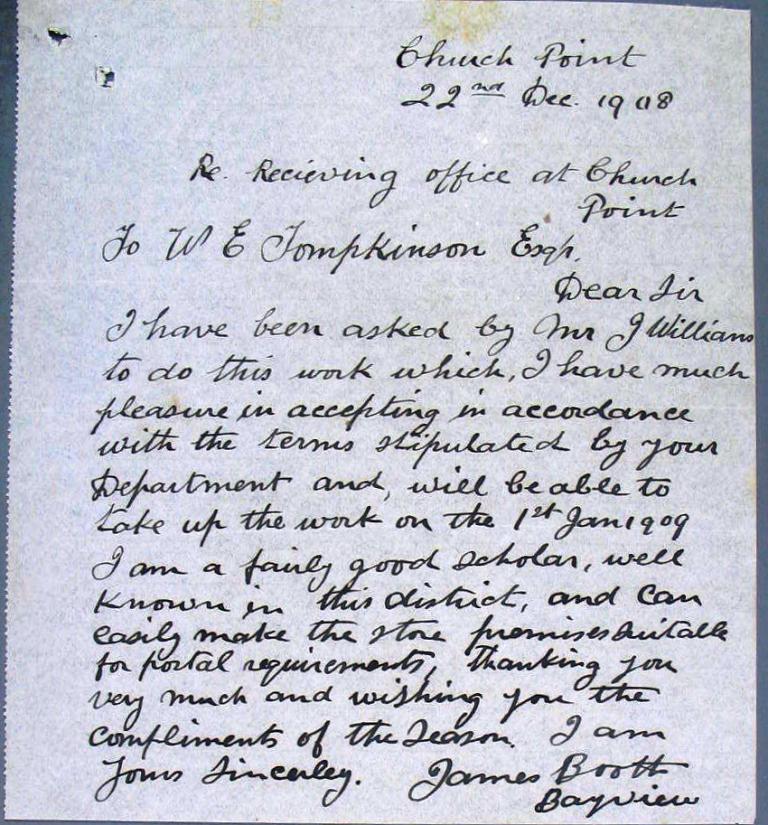 From National Archives of Australia's 1907-1912 records box for Church Point Post Office;