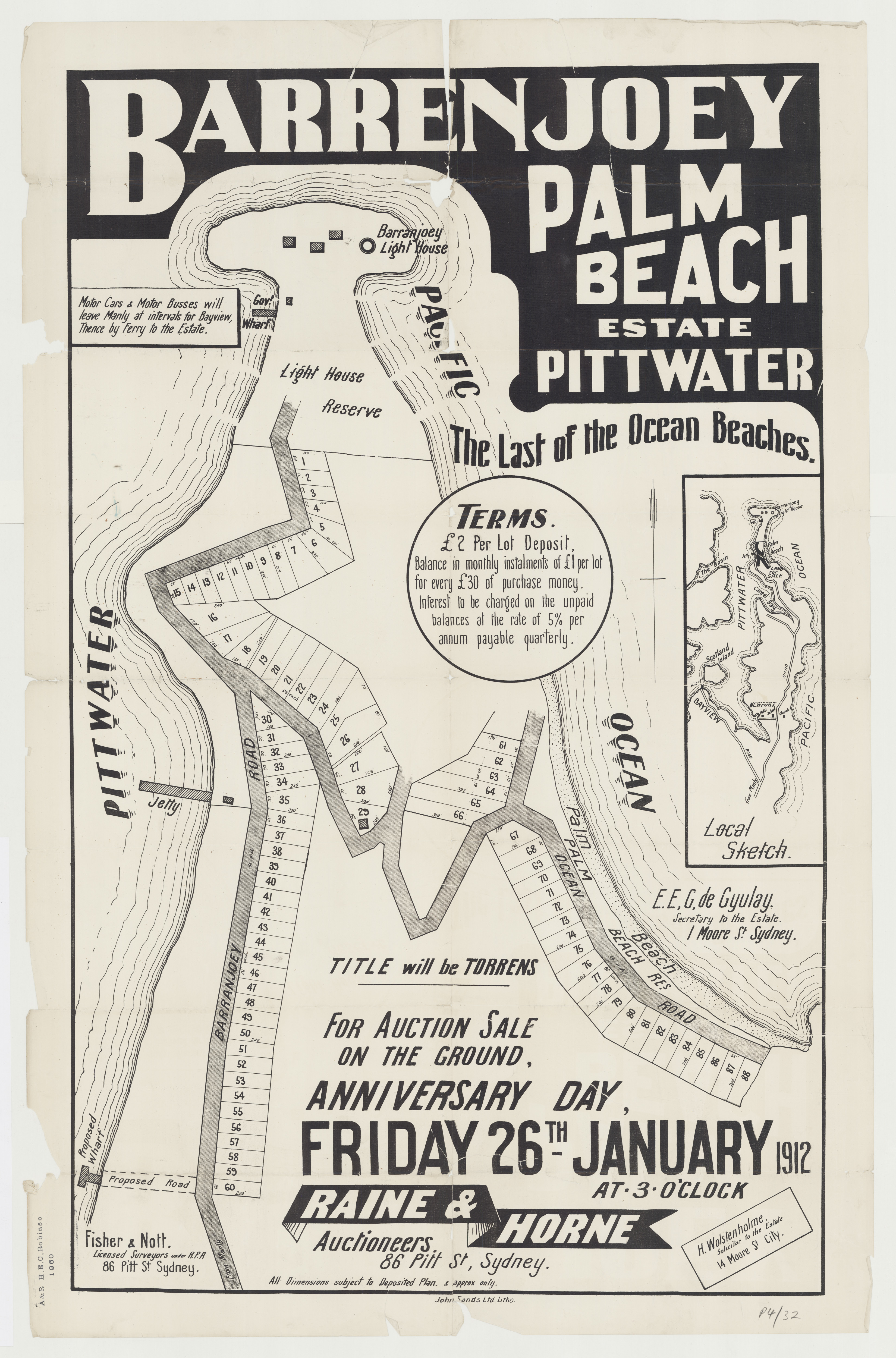 Barrenjoey - Palm Beach Estate - 5th Subdivision - Ocean Rd Item: c052700018, courtesy State Library of NSW