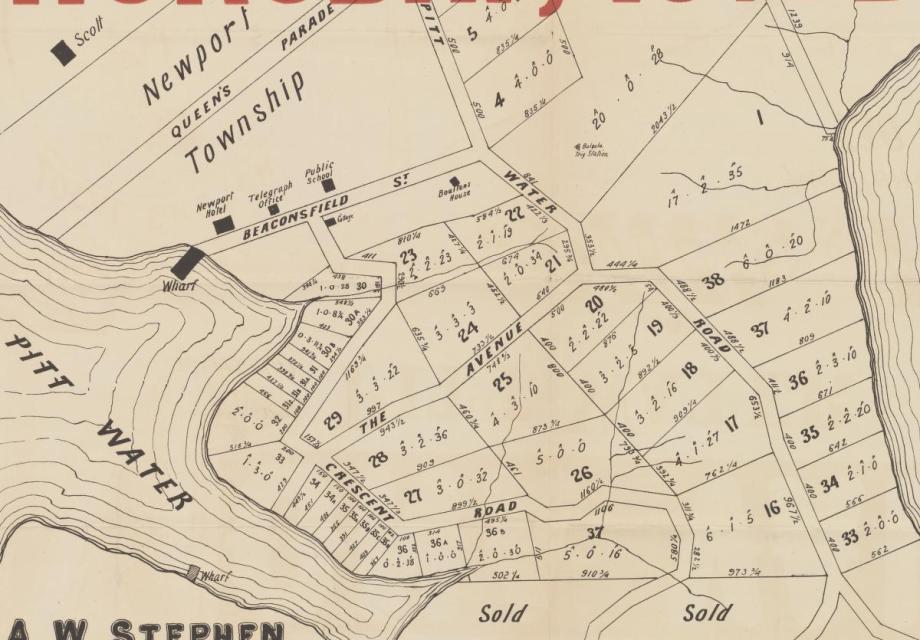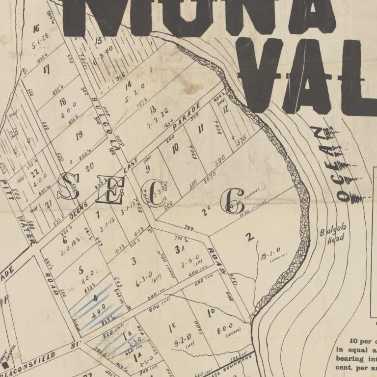 3rd Subdivision - Mona Vale - Pittwater - Queens Pde, Bulgola Rd, Beaconsfield St, The Ave, Crescent Rd, Pittwater Rd 1889. Item No.: c046820019, from Mona Vale Subdivisions folder, courtesy State Library of NSW.
