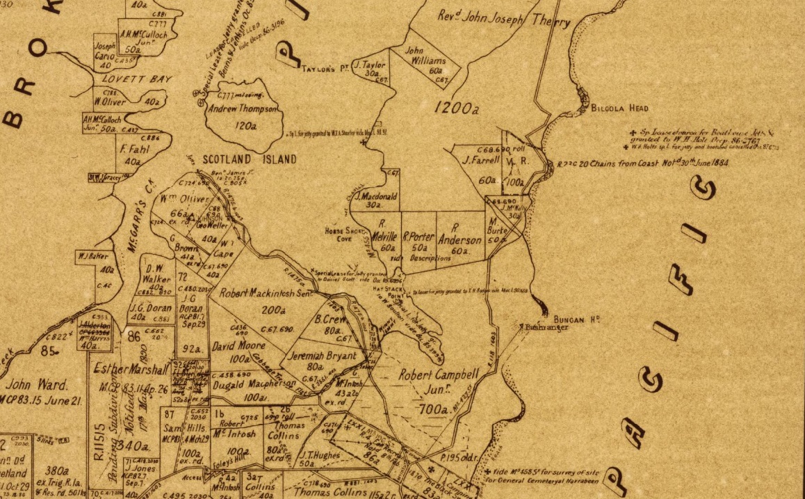 The whole of Bungan Beach and surrounds to the Newport estuary edge formed part of the Robert Campbell Jnr. grant that then was owned by D'Arcy Wetnworth and became the Bassett - Darley Estate.