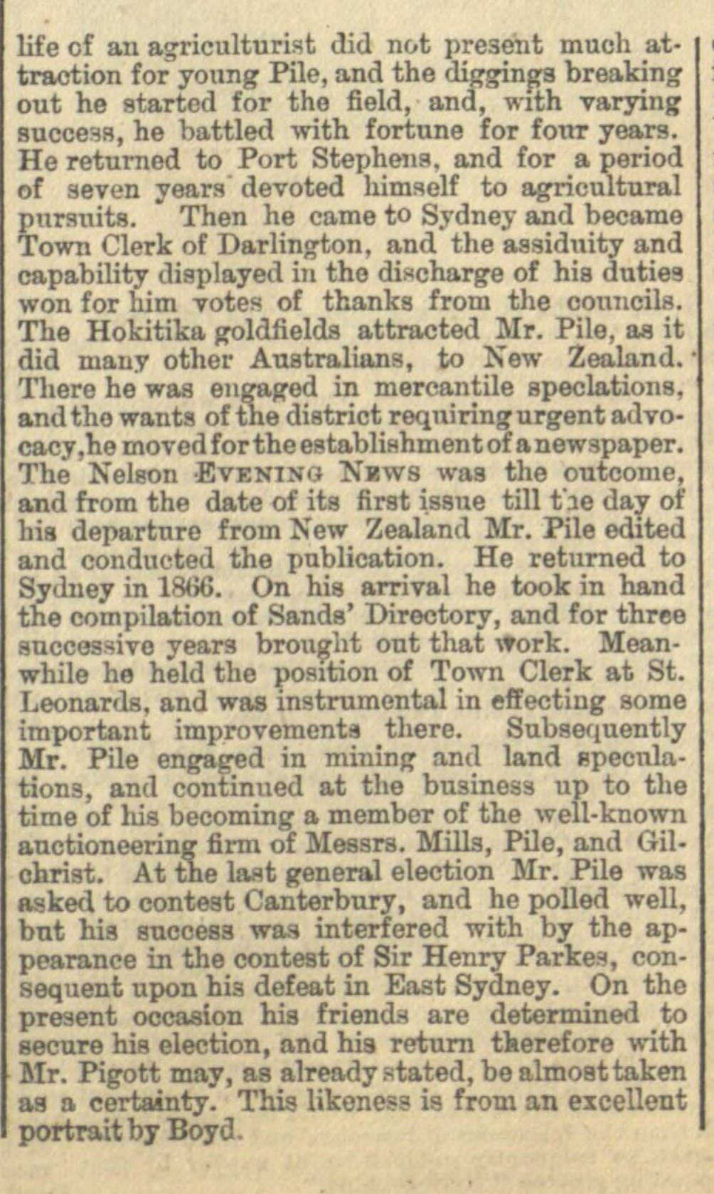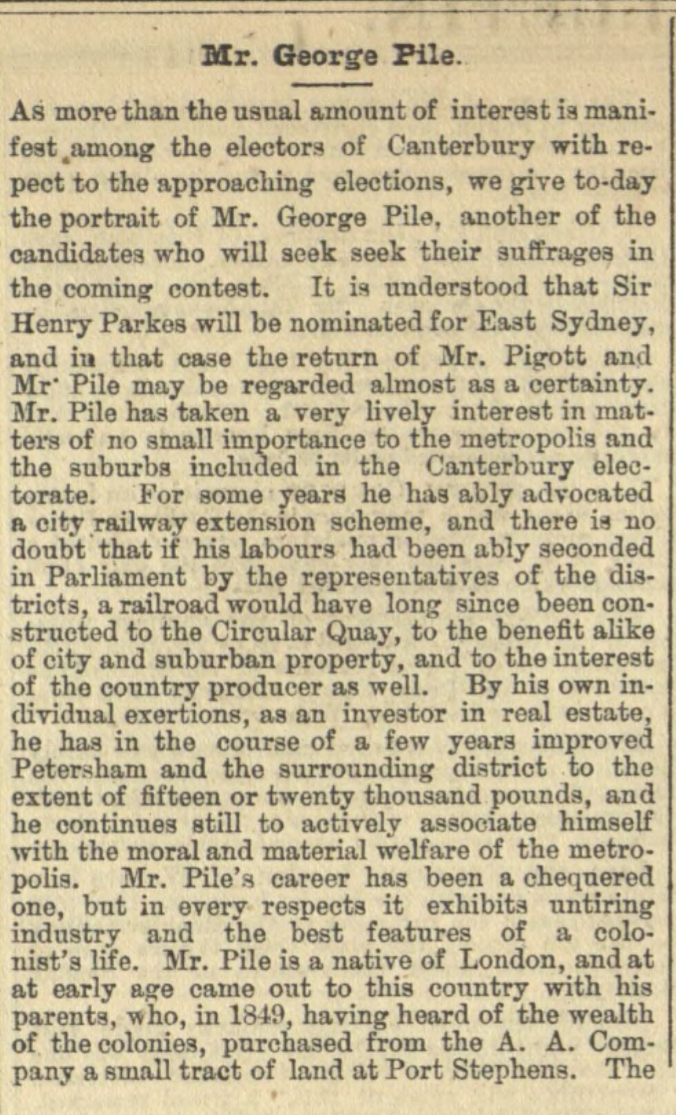 GEORGE PILE. Advertising (1894, February 5). The Sydney Morning Herald (NSW : 1842 - 1954), p. 8. Retrieved from http://nla.gov.au/nla.news-article28257995