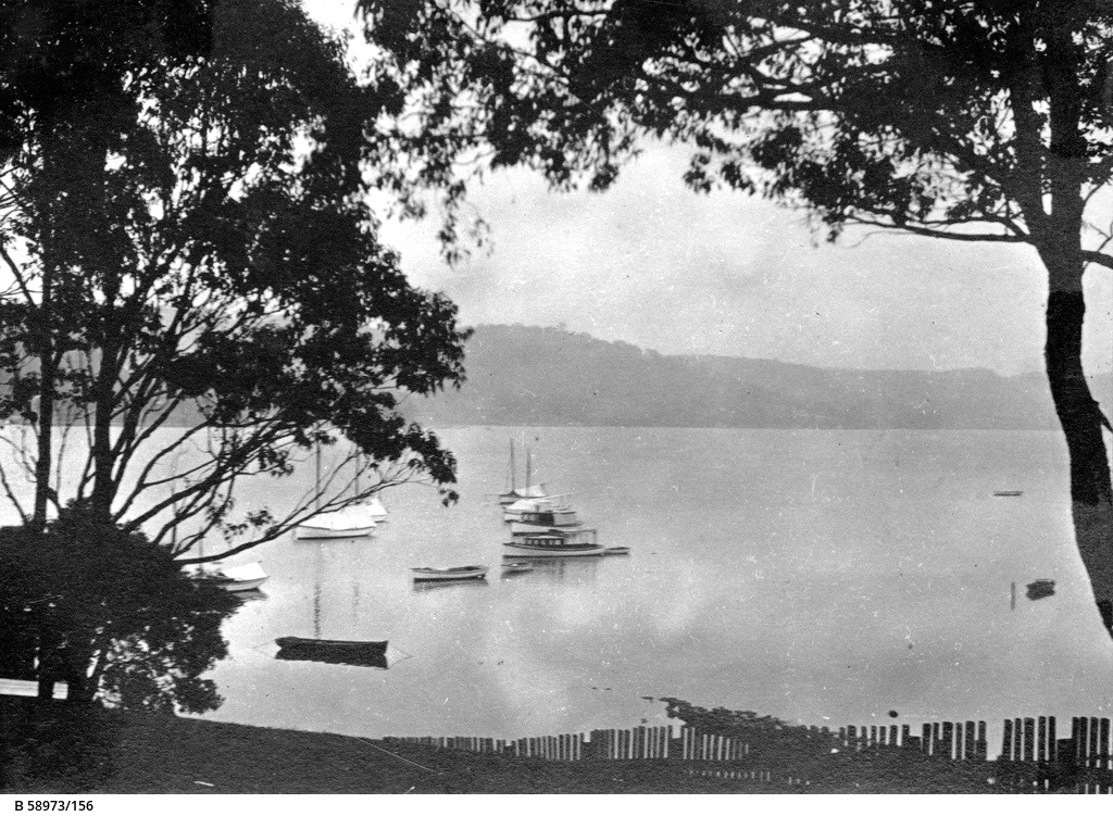 'Scotland Island, Newport, Pittwater, N.S.W.', photo by Henry King, Sydney, Australia, c. 1880-1886. From Tyrell Collection, courtesy Powerhouse Museum - taken from above Rocky Point Peninsula and Lovett's Bay looking east.