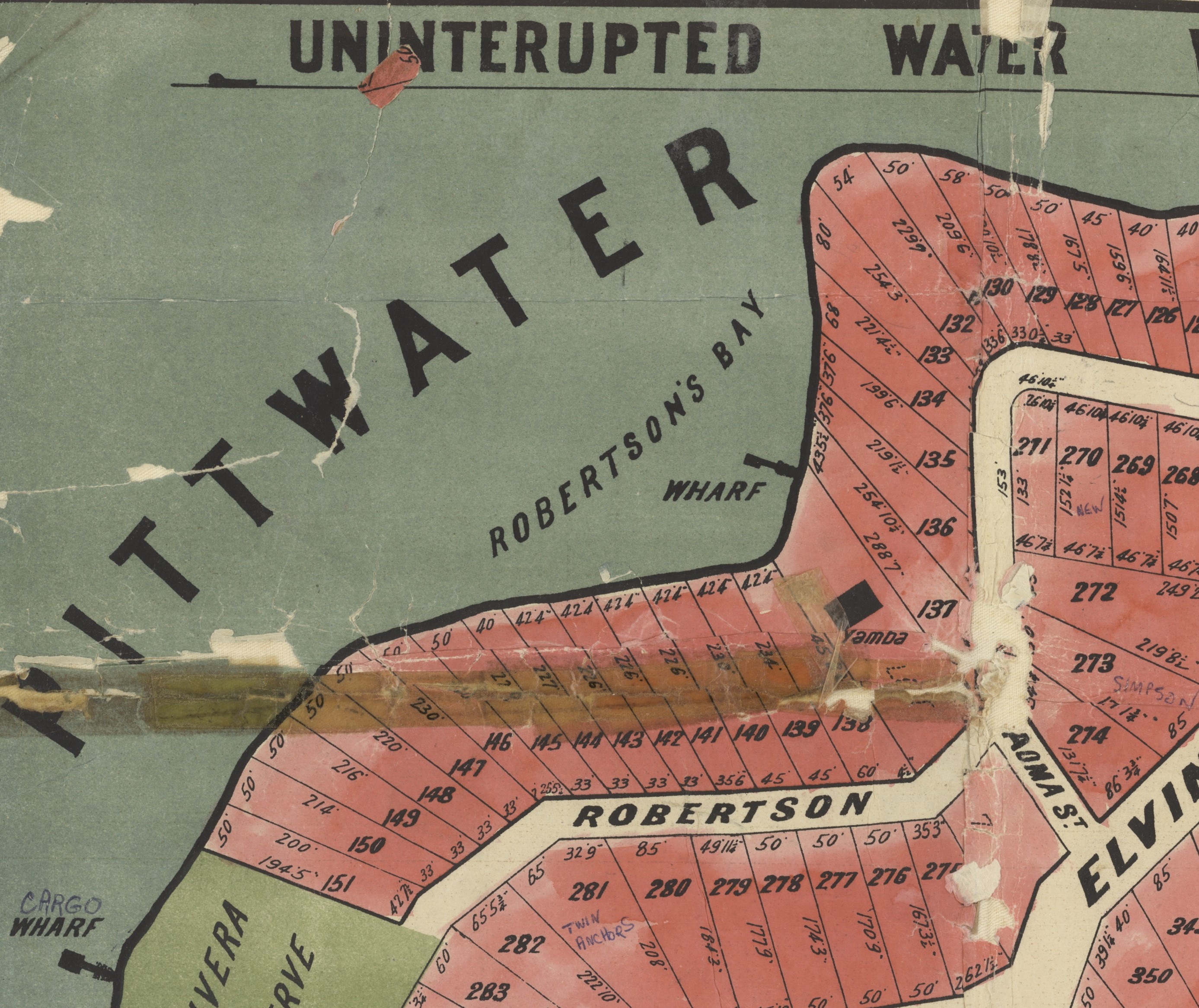 One of the early purchasers during this era is Bernard James Newmarch, C.B.E., CM.G. (1856-1929) who buys lots 48 to 50. By 1907 is is applying for permission for a wharf lease.