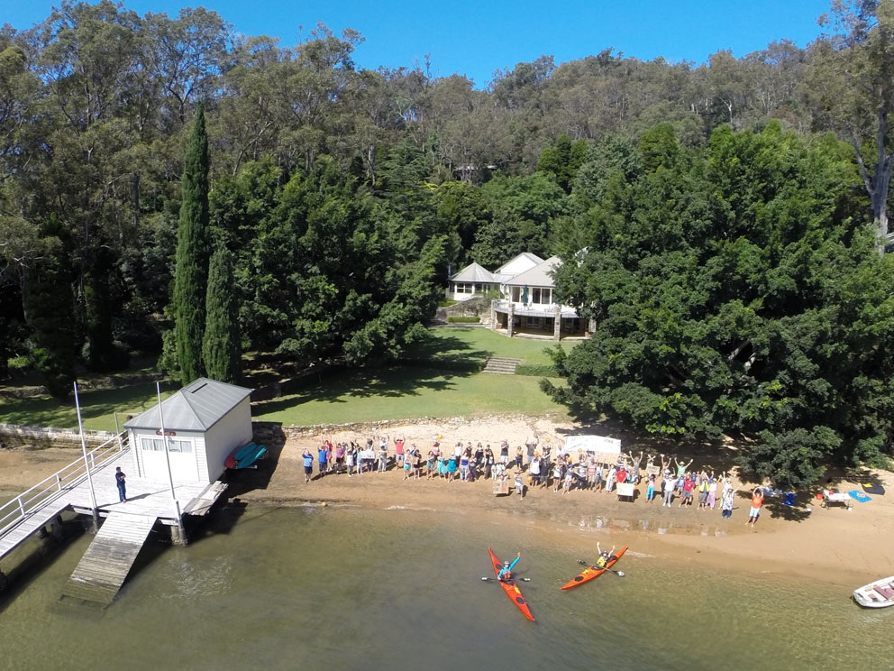 More than 70 Scotland Island residents gathered on the beach on the weekend at the iconic Yamba Estate to protest against a highly controversial commercial development on Scotland Island.
